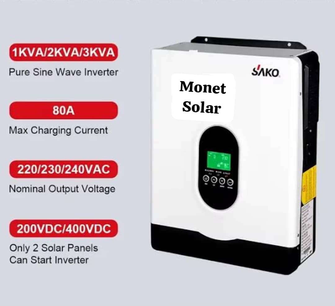 The SAKO hybrid inverter supports both off-grid and on-grid usage, intelligently switching between available power sources to keep your appliances running without interruption. It features a user-friendly LCD display, multiple layers of protection, and efficient solar charging, making it ideal for energy-conscious users looking for performance and reliability.